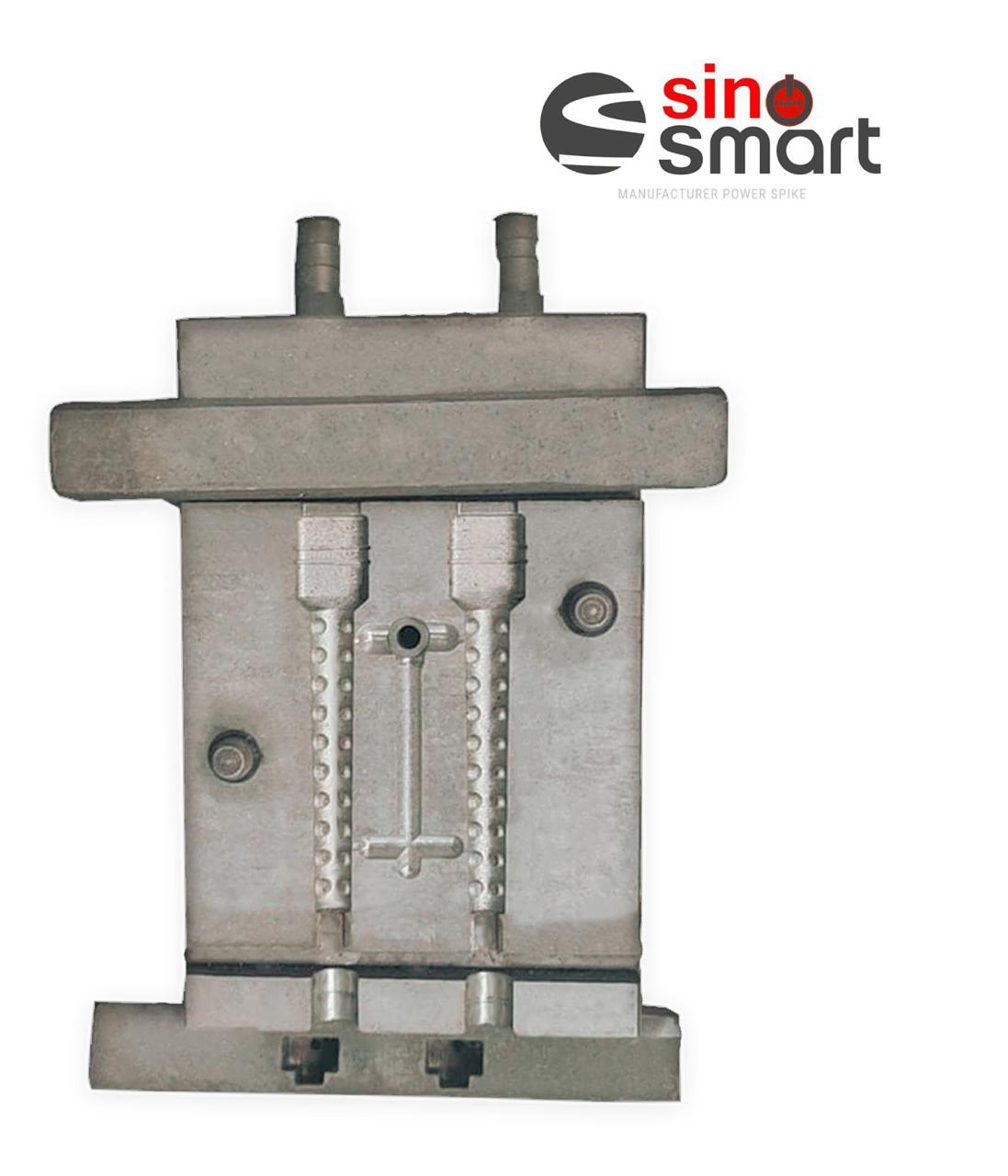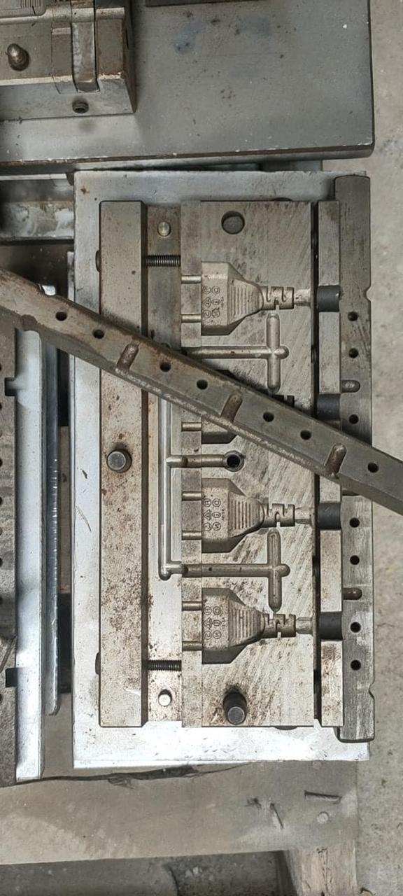 These images display specialized metal injection molds (or tooling) used in the mass production of plastic and rubber components for electronics and power accessories. The molds are essential for the manufacturing process, particularly for Power Spikes (Surge Protectors), HDMI Connectors, and electrical plugs.
